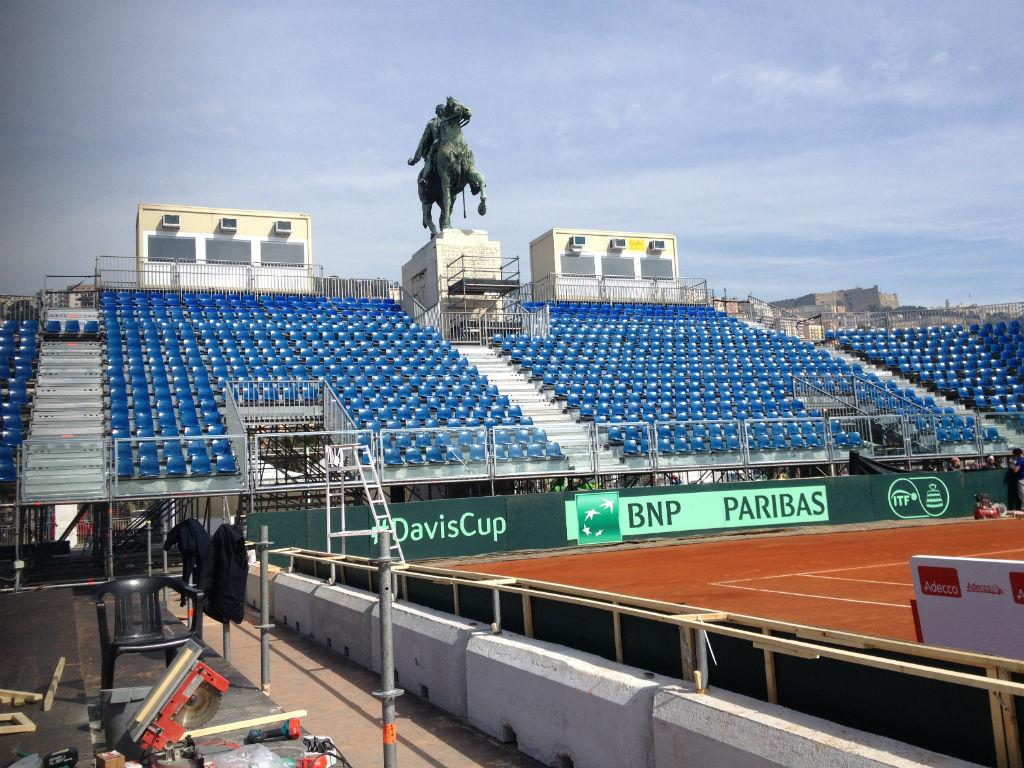 Le foto dell’Arena del tennis di Napoli che ospiterà Italia-Gran Bretagna valida per i quarti di Coppa Davis. (Foto di Stefano Tarantino).