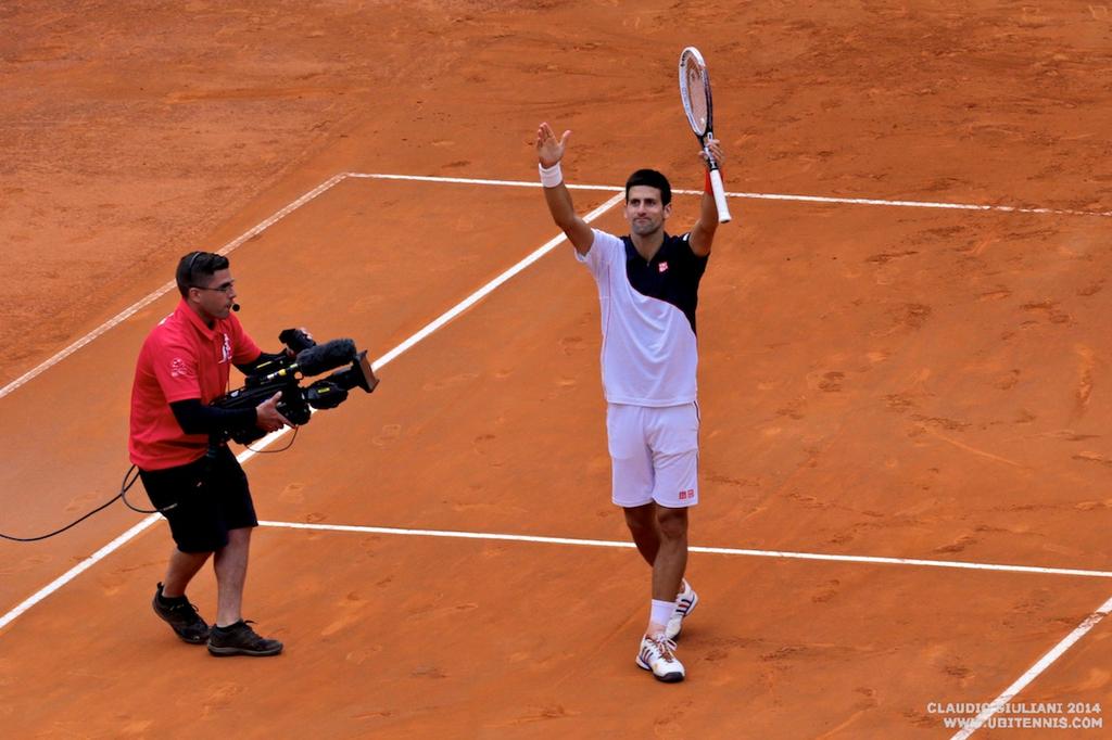 Braccia al cielo e baci: Djokovic vince il torneo di Roma 2014 (foto C. GIULIANI)
