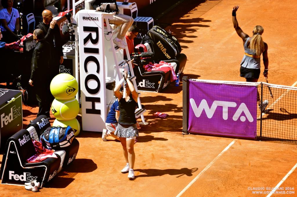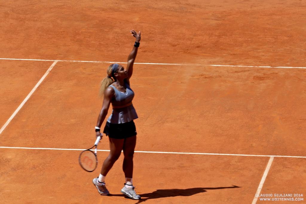 Serena Williams saluta il pubblico di Roma dopo la vittoria (foto C. GIULIANI)