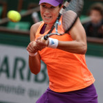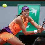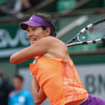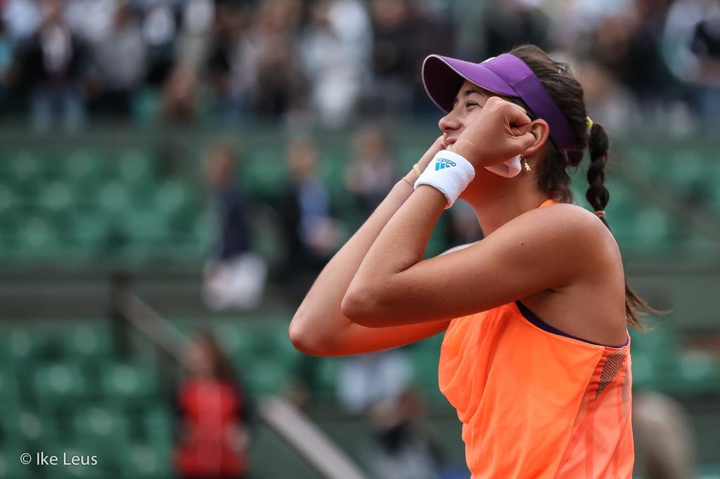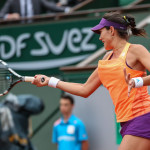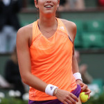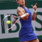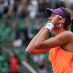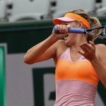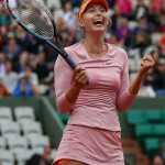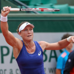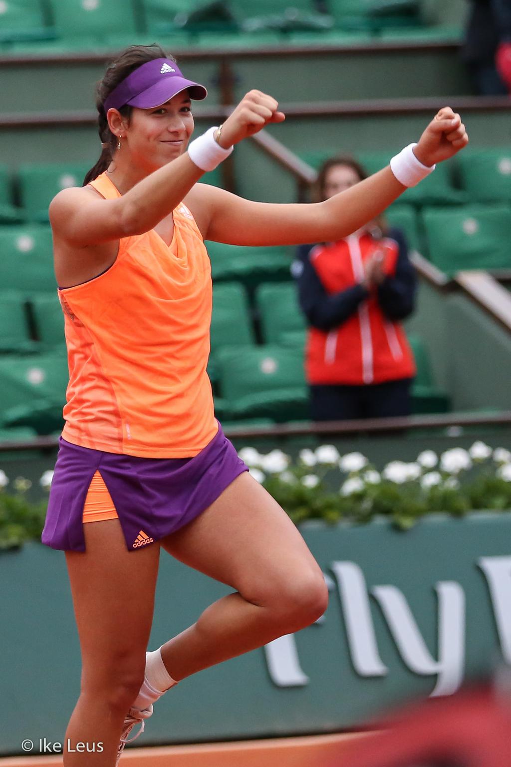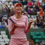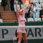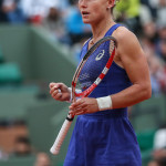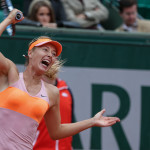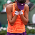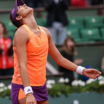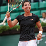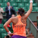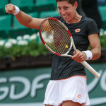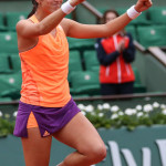 Carla Suarez Navarro esulta dopo aver battuto Ajla Tomljanovic al Roland Garros 2014 (photo by IKE LEUS)