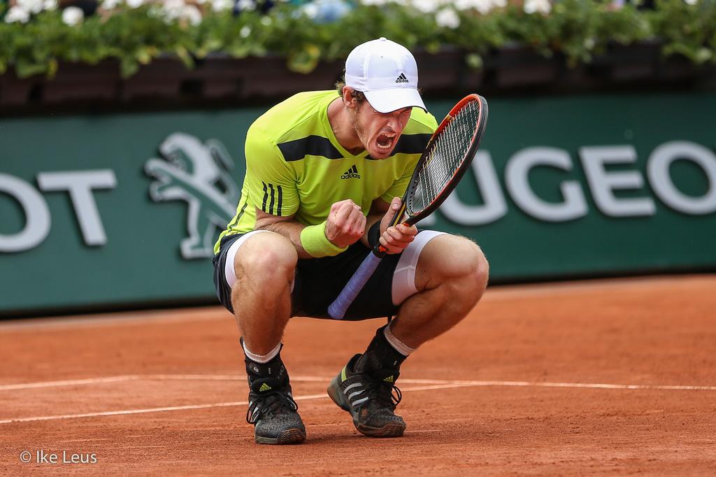 Andy Murry esulta dopo aver battuto Philipp Kohlschreiber al Roland Garros 2014 (photo by IKE LEUS)