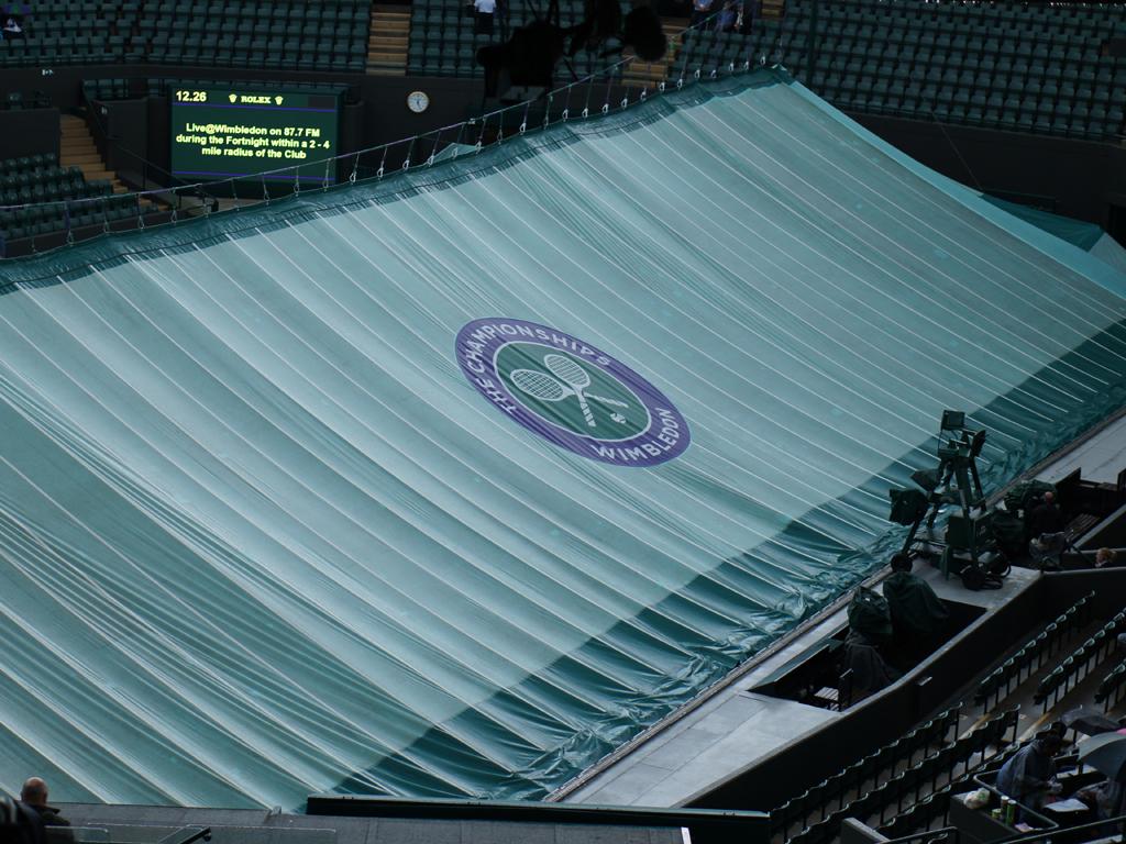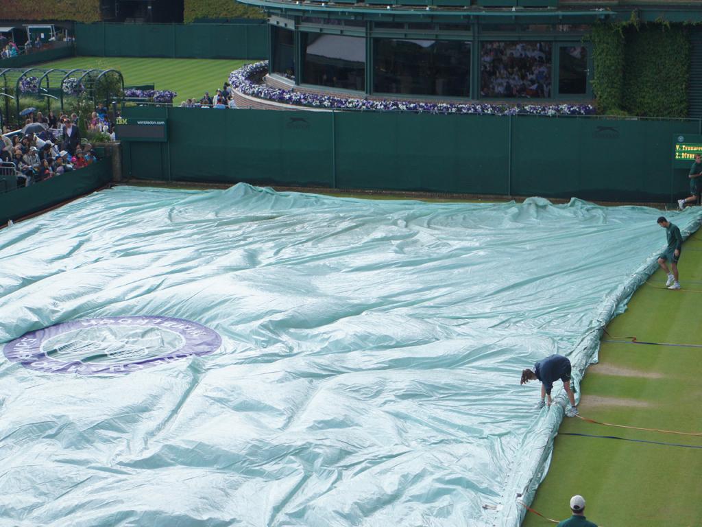 Piove a Wimbledon, campi coperti dai teloni (foto FABRIZIO MACCANI)