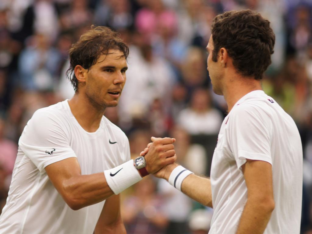 La stretta di mano tra Rafael Nadal e Mikhail Kukushkin (foto FABRIZIO MACCANI)