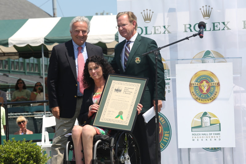 Ognuno dei premiati è stato introdotto a sua volta da un membro dell’istituzione, Brad Parks, primo atleta in carrozzina ad essere insignito dell’onorificenza nel 2010, ha presentato ed onorato Chantal Vandierendonck, a sua volta prima donna disabile ad essere premiata, nonché la prima di nazionalità olandese, “Il tennis in carrozzina ha portato davvero molto alla mia vita. La sfida di lavorare al mio gioco, semplicemente amo allenarmi e vedere se tutto il lavoro fatto inciderà nei match. Ma mi ha anche aiutato molto ad avere a che fare con una vita in sedia a rotelle. Stare attorno a tutte questa persone, attive, giovani, indipendenti, positive e con mentalità sportiva, mi ha mostrato come possa essere ancora bella la mia vita, anche se in carrozzina… Ho imparato molto dagli altri giocatori e sono grata di questo. Spero, con tutto quello che ho imparato, di essere in grado di inspirare altre persone. Sono profondamente onorata di ricevere questo riconoscimento per la mia carriera”.