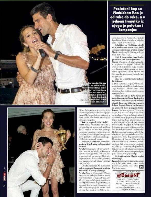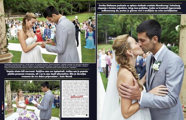 Nei giorni scorsi vi avevamo raccontato del matrimonio off-limits del campione serbo Novak Djokovic con la sua amica d’infanzia ed ora mamma del suo futuro pargolo, Jelena Ristic. Le foto del matrimonio sono state vendute in esclusiva mondiale al magazine britannico “Hello!”, che a tre giorni dalle nozze ha pubblicato un servizio con le parole dei due novelli sposi.