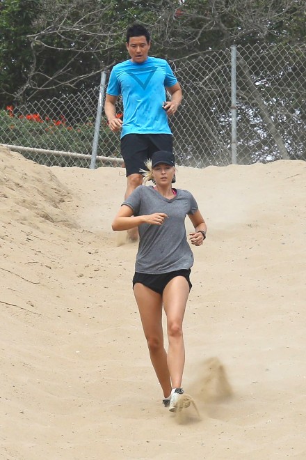 Si allena duramente Maria Sharapova, impegnata a correre sulla sabbia della California in vista dei tornei sul cemento che partiranno a breve, per quanto la riguarda.