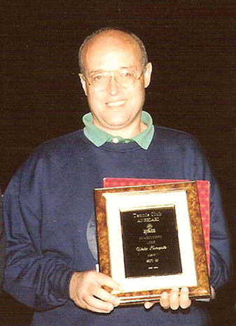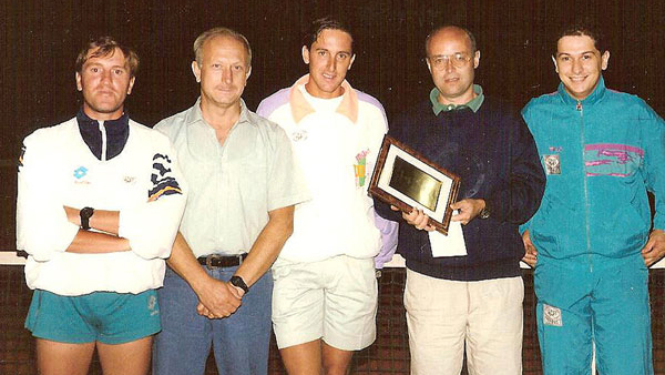 Altro salto: Inizio anni ‘90, nasce mio figlio Giancarlo, Paolo Rossi è il suo maestro, il papà di Paolo l’ammirato spettatore delle prime evoluzioni tennistiche di Giancarlino, fino a 14 anni fra i migliori ragazzi toscani. E poi alla sera, doppi, doppi e doppi. Salvo che con Giuseppe Di Leva che voleva giocare solo singolari. Match accanitissimi, fra una telecronaca televisiva e l’altra, questa volte vere, per Tele Capodistria e per Tele+. Con il Tennis Anghiari, quel mai abbastanza benedetto campo da tennis spuntato come per miracolo sulla collina, per più di 10 anni le mie vacanze