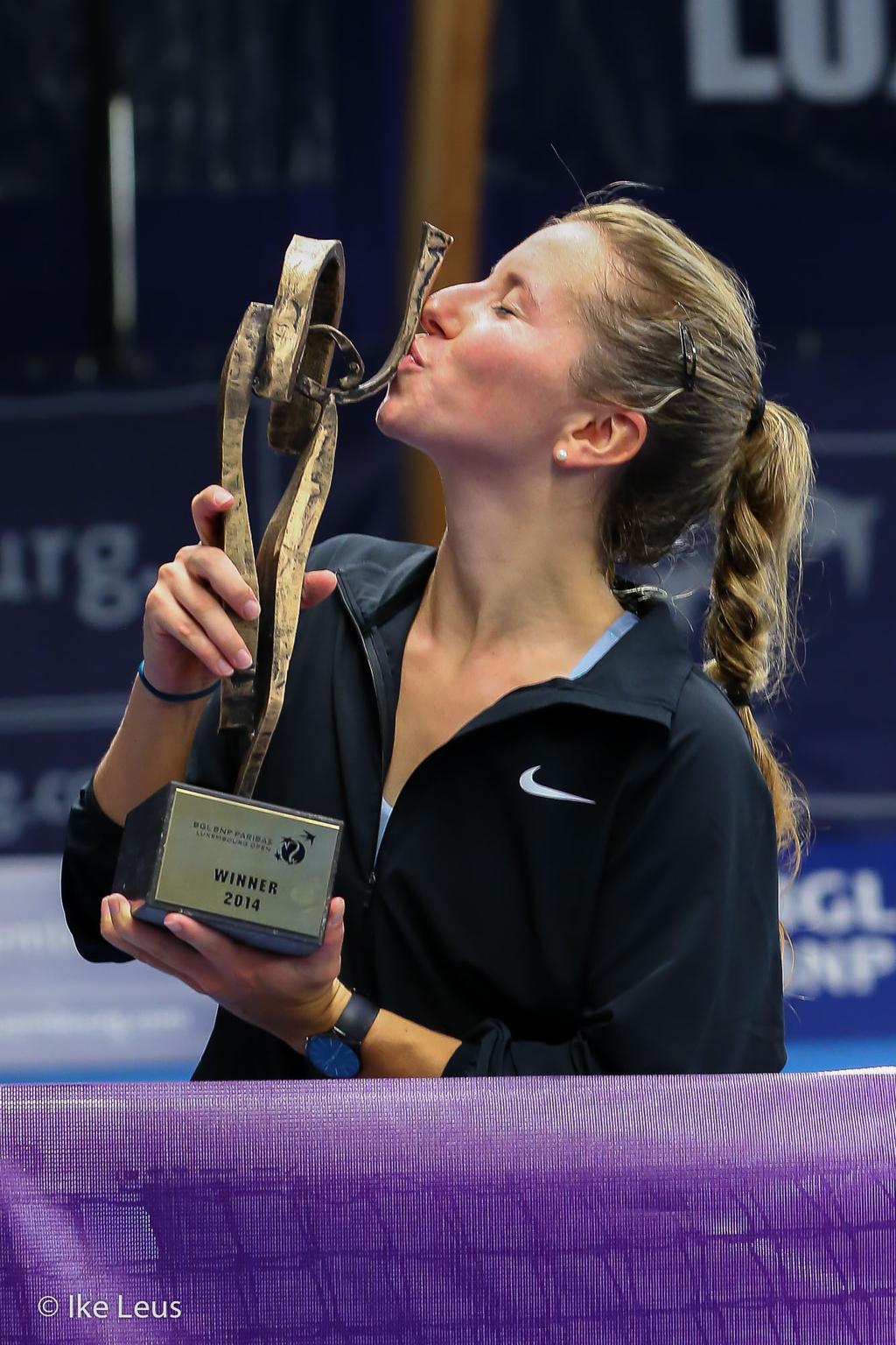 Annika Beck col trofeo del WTA di Lussemburgo (foto di IKE LEUS)
