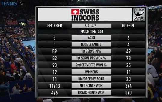 (1) R. Federer vs D. Goffin 6-2 6-2