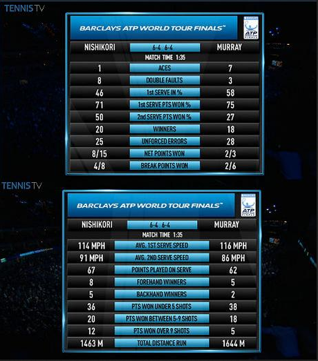 Nishikori può così festeggiare il suo esordio alle ATP Finals con una vittoria importantissima che lo pone momentaneamente al comando del gruppo B in attesa del match di stasera tra Raonic e Federer.
