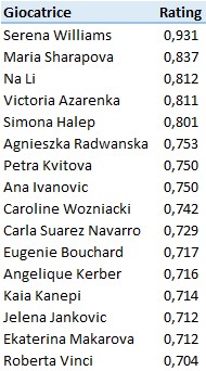 Cogliamo l’occasione, prima di presentare in calce al nostro articolo le schede 2014 delle top ten emerse dal nostro modello di analisi, per comunicare che, nel corso del 2015, pubblicheremo su Ubitennis una classifica femminile Open Era completa (si tratta di un lavoro giunto ormai alla fase finale), oltre a un aggiornamento di quella maschile, con le modifiche delle quali si diceva all’inizio (oltre ad altri miglioramenti nella catalogazione storica dei tornei).