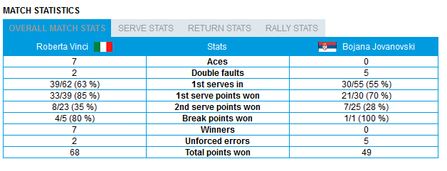 R. Vinci vs B. Jovanovski 7-5 6-1