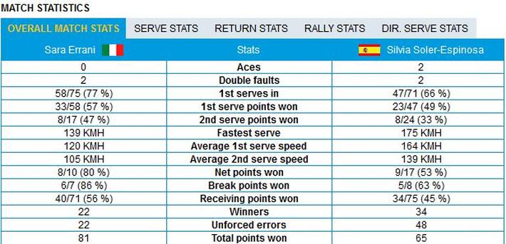 Stats Errani Espinosa