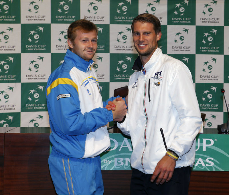 Golubev e Seppi al sorteggio di Kazakistan vs Italia (foto Sergey Kivrin)