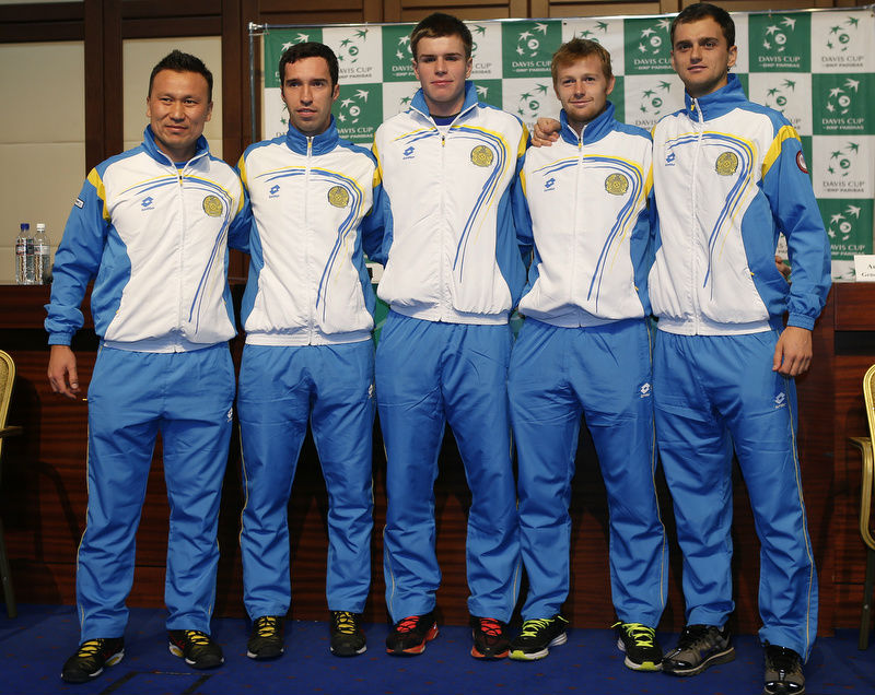La squadra kazaka al sorteggio di Kazakistan vs Italia (foto Sergey Kivrin)