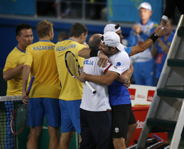 Le foto della seconda giornata del match di Coppa Davis fra Kazakistan e Italia, ad Astana. Fognini, Bolelli, Nedovyesov e Golubev in foto