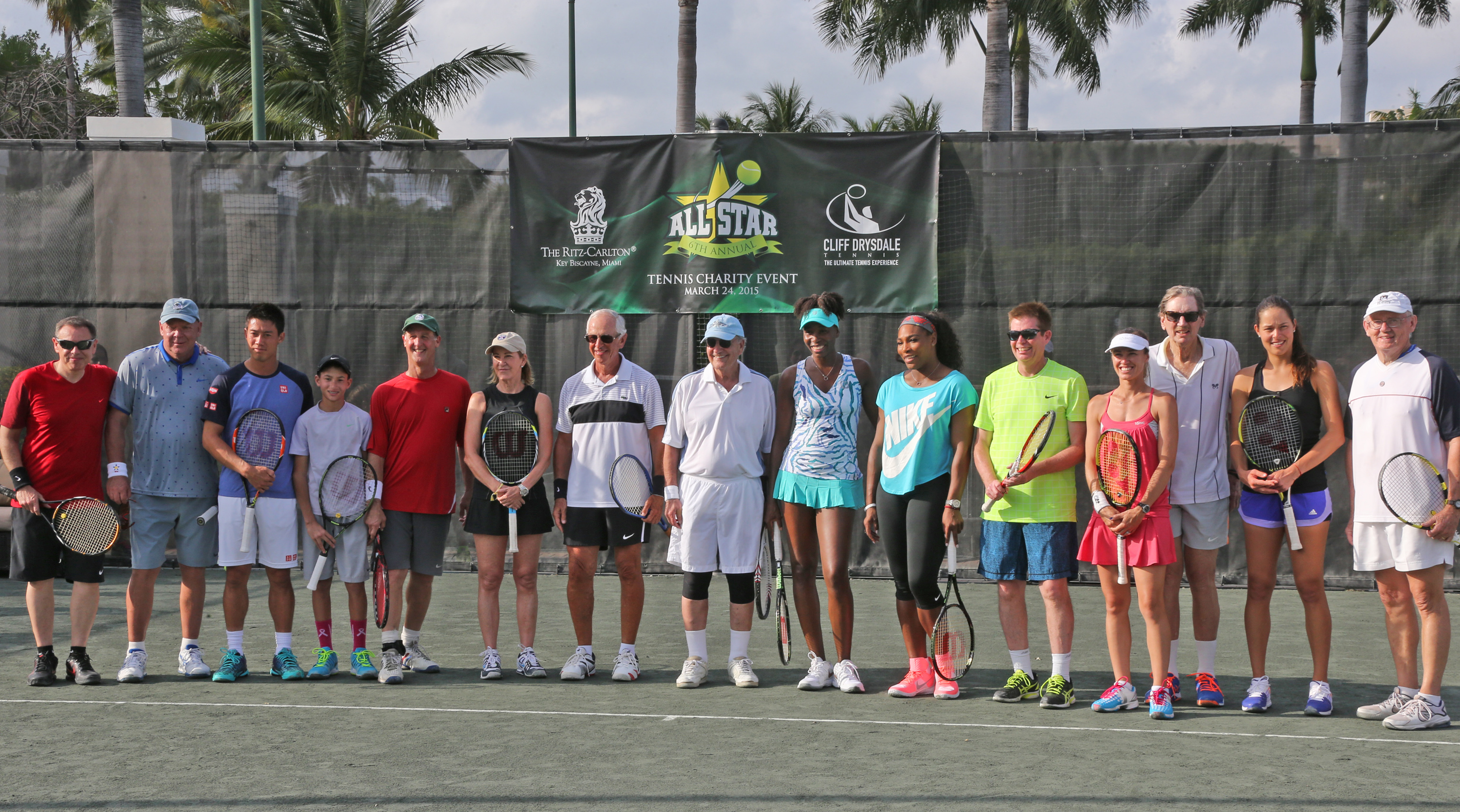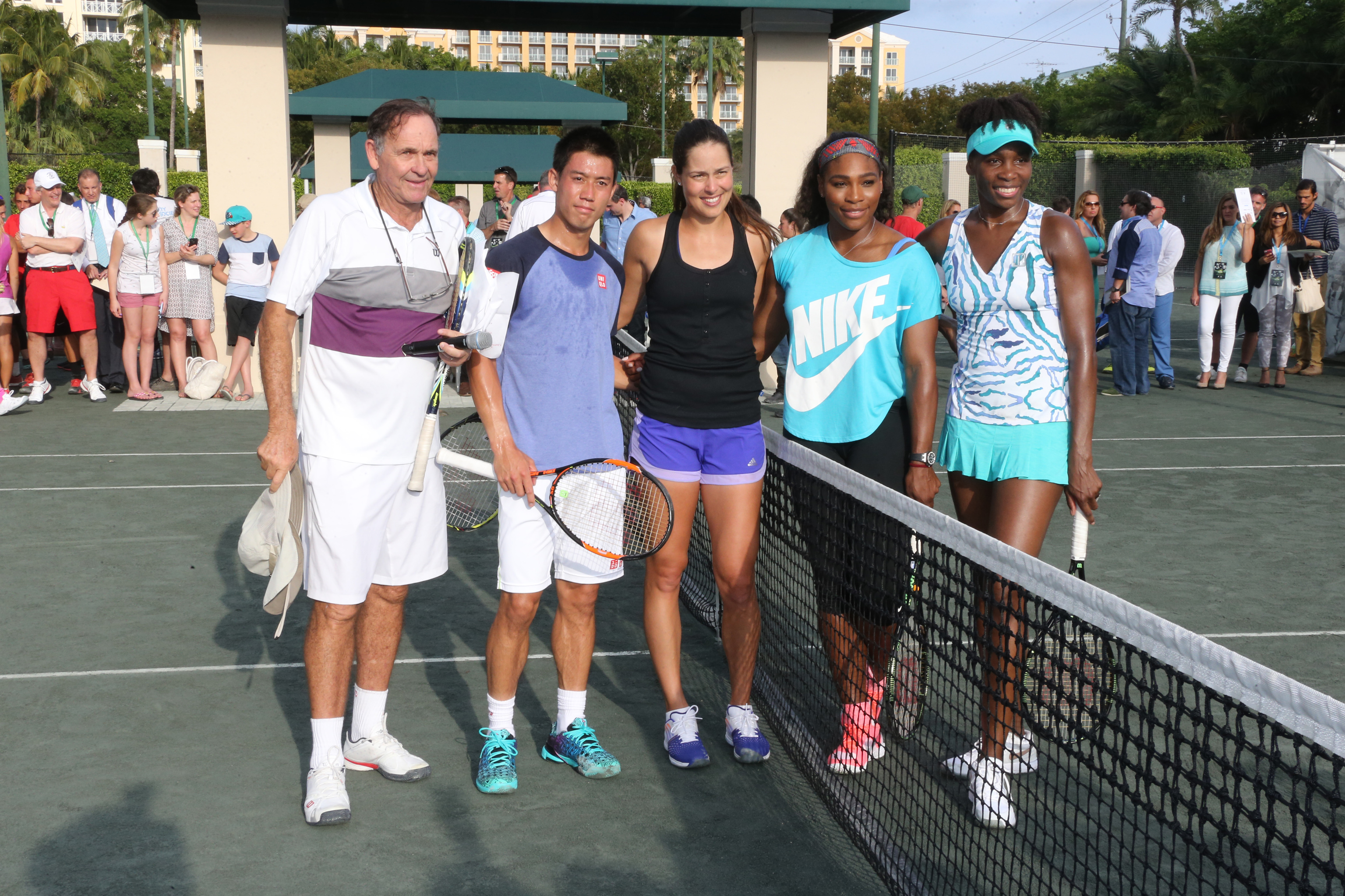 Kei Nishikori, Ana Ivanovic, Venus e Serena Williams, Miami 2015 (foto ART SEITZ)