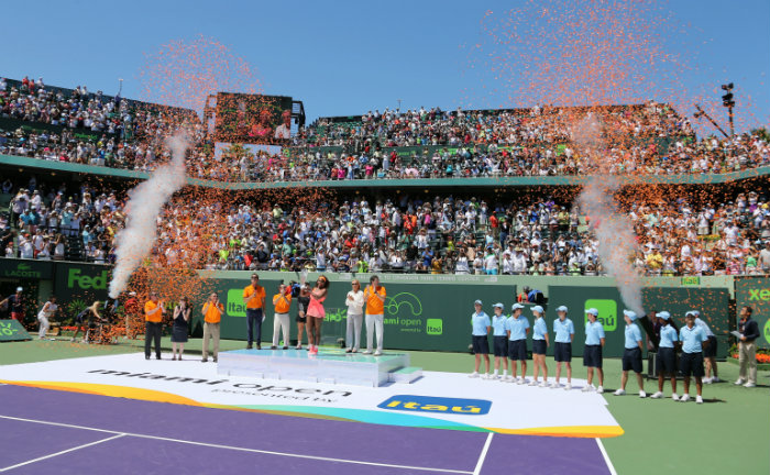 Le più belle foto del torneo Masters1000 e Premier Mandatory di Miami a cura di Art Seitz. La finale femminile tra Serena Williams e Carla Suarez Navarro con l’americana che festeggia l’ottavo titolo e posa per il set fotografico. (foto by Art Seitz)