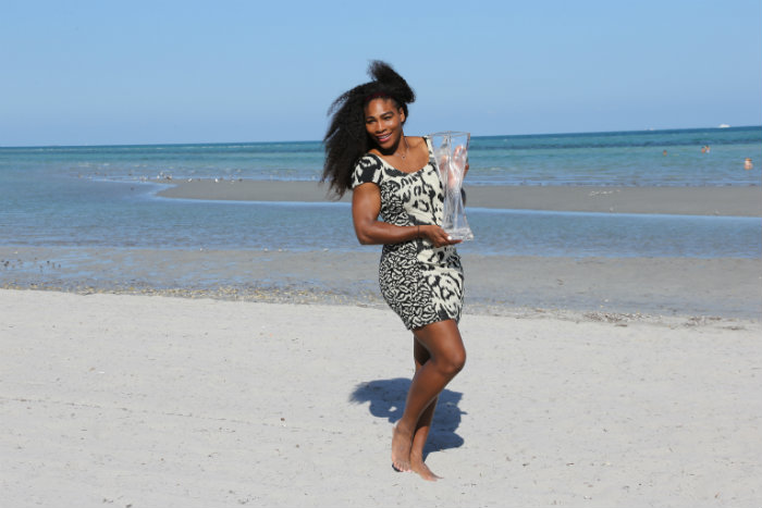 Serena col trofeo sulla spiaggia, foto by ART SEITZ