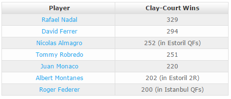 classifica vittorie su terra rossa