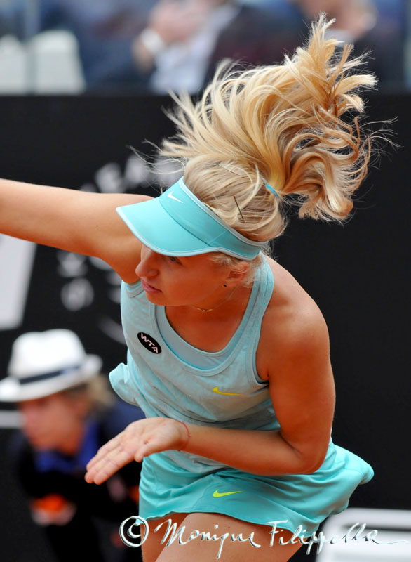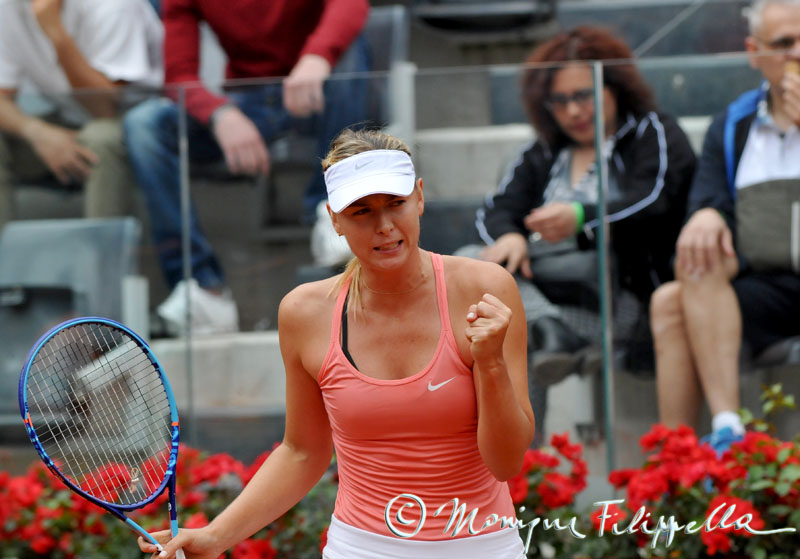 Le foto del giorno, dal Foro Italico. Suarez Navarro piega Halep, Djokovic batte ancora Ferrer, Sharapova ha la meglio su Gavrilova, Federer domina Wawrinka
