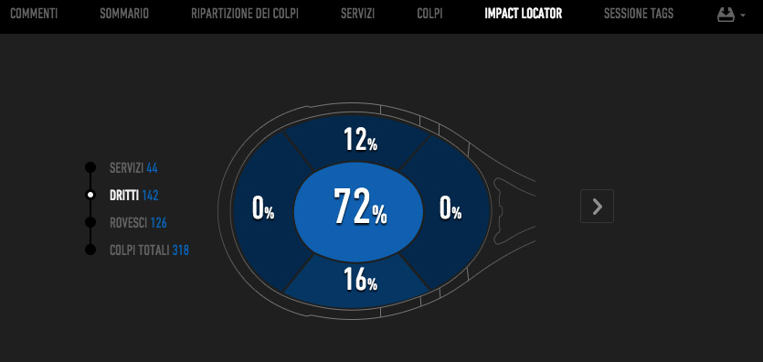 Connettiamo la racchetta al computer (Windows o Mac non fa differenza) con il cavo USB in dotazione e in un minuto scarichiamo i dati di gioco. Scolleghiamo il tutto e ci colleghiamo al sito Babolat Connect online, dove possiamo vedere cosa abbiamo combinato in campo. E quindi quanti diritti e rovesci abbiamo colpito, dove, cioè in che parte della zona d’impatto, li abbiamo colpiti, fino a vedere se siamo migliorati rispetto alle sessioni precedenti e come ci siamo posizionati in classifica generale. Perché c’è molto “Social” in questo sistema Play, con tanto di condivisione dei propri dati di gioco sulle reti sociali più famose. E poi c’è la classifica mondiale di chi gioca “Play”, con un giapponese primo in classifica. Nella gallery di seguito i risultati di due set di gioco, su diverse superfici.