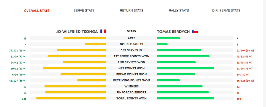 Dal canto suo, Berdych è perentorio sul suo tennis di oggi: “Oggi ero lungi dal giocare il mio miglior tennis. Certo, è una sconfitta molto deludente per me. Ora ritornerò a casa, è tutto. Devo trarre degli insegnamenti da questa sconfitta. Ora mi concentrerò sul prosieguo della stagione”.