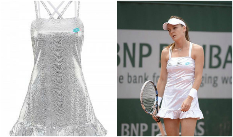 Pseudo paillettes, il trionfo del trash. Coraggiosa la Lotto, che ha messo ad Agniezska Radwanska questo vestito da discoteca, non credo nessuno avrebbe avuto il coraggio. Nonostante ciò, la polacca non ci è sembrata così vogliosa di festeggiare in campo, pur avendo quest’abitino…