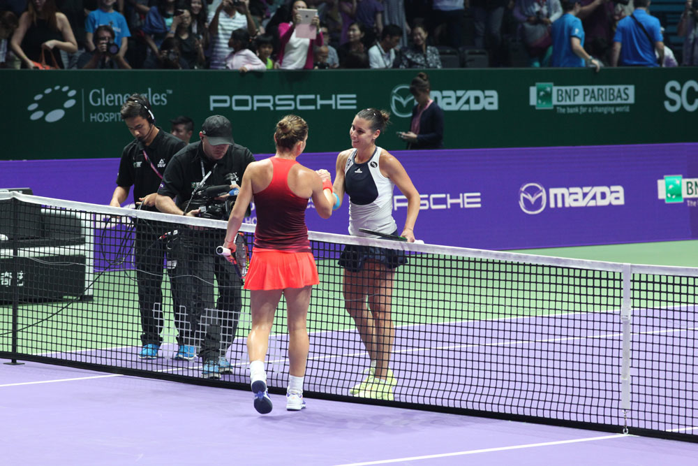 Simona Halep e Flavia Pennetta – WTA Finals 2015 (foto di Philip Cho)