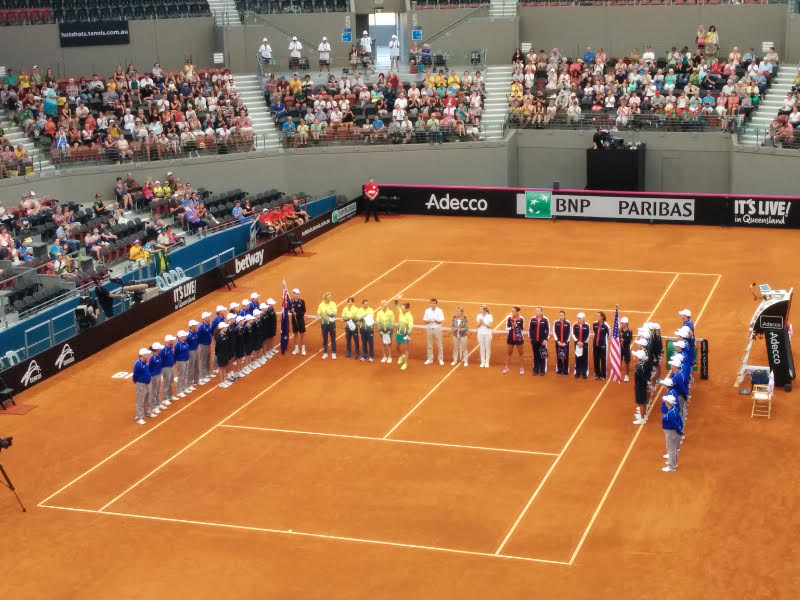 Sicuramente non il risultato che ci aspettava a conclusione della prima giornata qui a Brisbane per i play off della Fed Cup e USA a un passo dalla vittoria. Per l’occasione la superficie della Pat Rafter Arena (oltre 2000 spettatori oggi e tantissimi bambini) è stata cambiata in terra rossa, in modo da agevolare sia Stosur (semifinalista al Roland Garros nel 2012 e finalista nel 2010) che Gavrilova (quarti a Roma l’anno scorso). Mentre il pronostico dell’incontro di apertura è stato rispettato, con Madison Keys in splendida forma e braccio al fulmicotone che si sbarazza abbastanza facilmente di Daria Gavrilova, un pò troppo nervosa al suo esordio in Fed Cup coi colori verde oro dell’Australia, la sorpresa viene dal secondo singolare, dove Christina McHale vince in recupero lo scontro con Sam Stosur, protagonista dell’ennesima “stosurata”, e porta gli Stati Uniti sul 2-0, lasciando poche speranze alla squadra di casa.