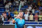 Il programma della giornata è tormentato dalla pioggia e così la finale comincia con quasi tre ore di ritardo. Comunque nel tardo pomeriggio fa capolino il sole e, conclusasi la finale di doppio con la vittoria di Inglot/Nestor, finalmente si comincia a giocare il match di singolare.