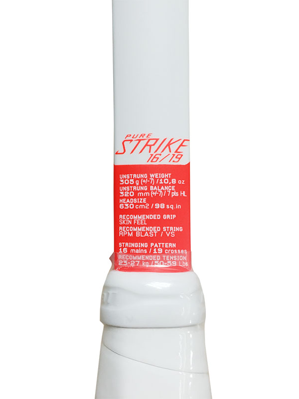 Abbiamo incordato la racchetta con RPM Blast, scegliendo una tensione di 23×24, un compromesso tendente più al controllo che alla potenza su un telaio del genere. La prima sensazione, a cinque minuti dai primi colpi, è quella di un impatto secco ma morbido, perché la racchetta è stabile e non c’è il minimo ritorno di vibrazioni. Anche il suono, un po’ sordo, sembra accompagnare foneticamente questa sensazione. Ci mettiamo un po’ ad abituarci a questa racchetta, perché di solito usiamo un modello più rigido; quindi, nel generare velocità quando proviamo a sbracciare, percepiamo un po’ l’effetto fionda. Ma, alla fine della prima ora, quando oramai abbiamo preso confidenza con il mezzo, i risultati sono straordinari. Colpi piatti o con un filino di topspin sembrano essere la soluzione con la resa migliore con questa Pure Strike; ma basta arretrare di qualche metro e cominciare a esasperare in topspin, giocando à la Thiem insomma, per constatare che il controllo di palla è eccezionale, e così la resa delle rotazioni, perché vediamo la nostra palla impennarsi non appena tocca terra nell’altra metà campo. Certo, servono i movimenti fluidi per questo, ma l’impressione è che sia una racchetta che, con una discreta fluidità di braccio, aiuti molto a generare velocità e rotazione alle palla. Sotto rete la maneggevolezza e il peso si traducono in un attrezzo molto facile da manovrare; il bilanciamento a 32 centimetri è un buon compromesso sotto rete ma diventa ottimo quando alziamo la racchetta sopra la testa, negli smash o al servizio. Ci mettiamo un po’ per capire come sfruttare meglio le potenzialità della Pure Strike in battuta, pur constatando che le soluzioni con spin escono molto bene. Alla fine del test, anche le nostre prime palle colpite di piatto finivano dentro il rettangolo di gioco con buona regolarità e potenza.