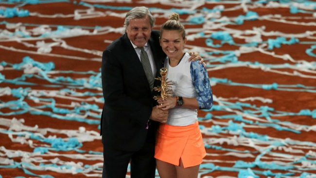 Ilie Nastase fotografato con la vincitrice del Mutua Madrid Open 2017, Simona Halep