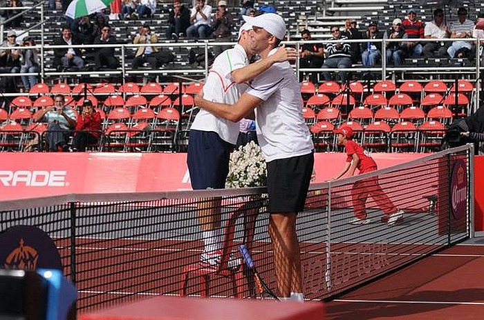 Lo confesso da subito: la grande curiosità, qui, è per la stretta di mano finale tra due giocatori separati da 35 centimetri di differenza in altezza. Il trottolino israeliano Dudi arriva con i capelli al petto del pivot statunitense prestato al tennis John, e la speranza è di rivedere l’esilarante scena avvenuta all’Open di Colombia nel 2014, quando Sela, sconfitto con due tie break da Ivo Karlovic, alto quanto Isner, prese una seggiola e la portò a rete per abbracciare l’avversario.