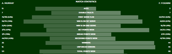 [1] A. Murray b. [28] F. Fognini 6-2 4-6 6-1 7-5