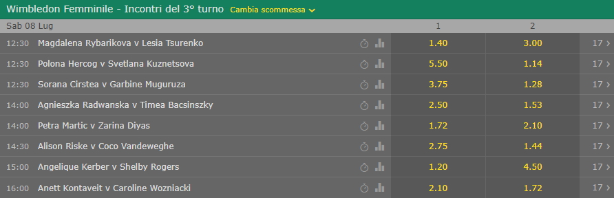 Clicca qui per le quote del torneo femminile di Wimbledon