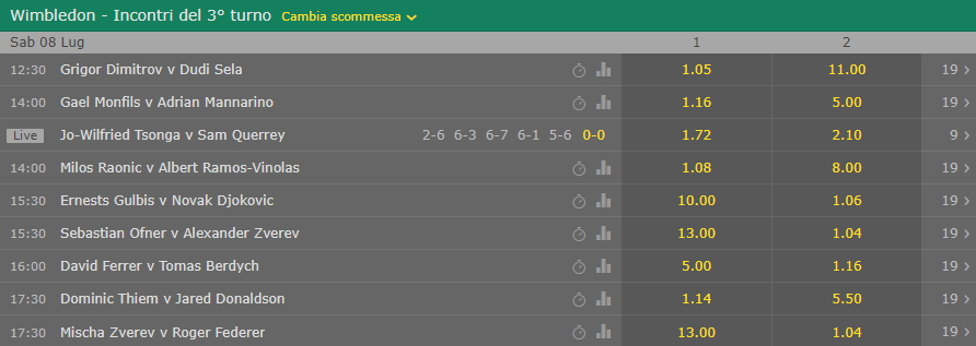 Clicca qui per le quote del torneo maschile di Wimbledon