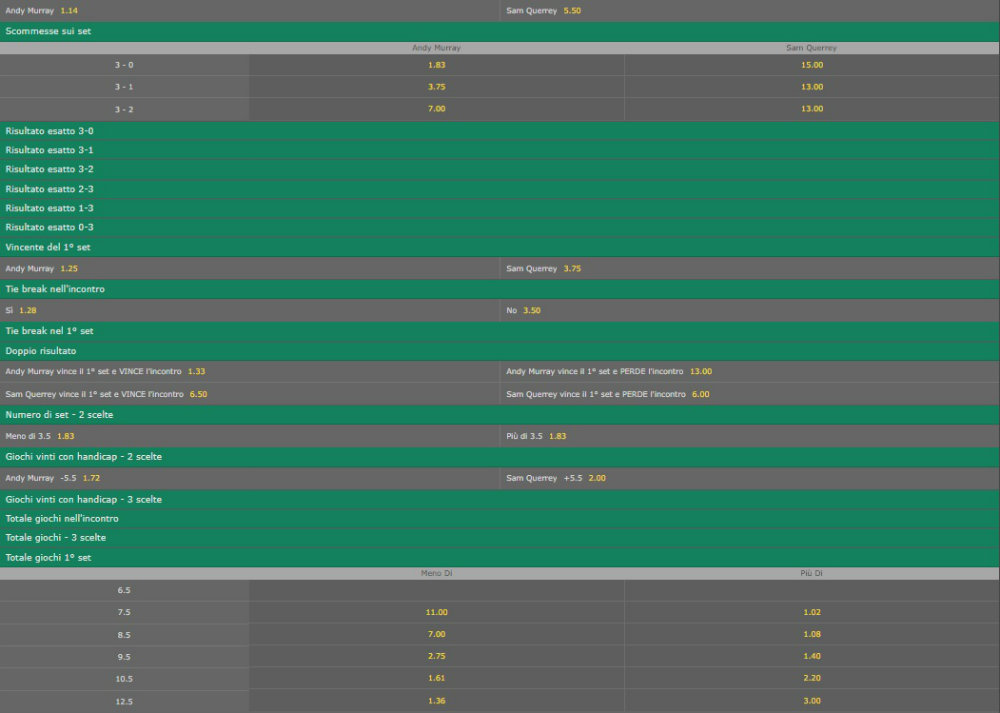 Paradossalmente Querrey potrebbe essere un ostacolo più duro per Murray. Se lo statunitense riesce a muoversi nel suo territorio (servizio, dritto e pochi scambi) lo scozzese potrebbe anche faticare a trovare il suo ritmo. Ma non ci si lasci ingannare dal n.1 del mondo: probabilmente sta meglio di quanto appaia, e finora non è stato abbastanza sollecitato. Persino contro Fognini gli è bastato giocare solo di rimessa. Il margine per alzare il livello è ancora ampio, ma forse un set può smarrirlo (3-1 quota 3.75).