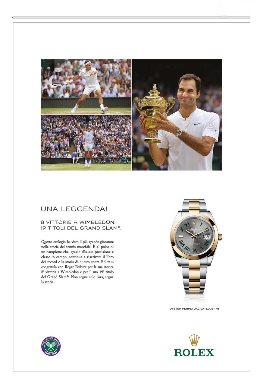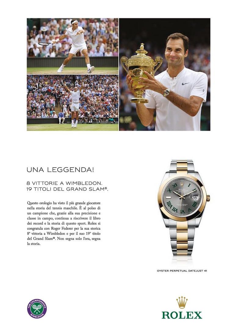 Uno sponsor storico e l’altro “nuovo” ma non può esserci momento migliore per Rolex e Barilla di festeggiare il proprio testimonial Roger Federer dopo l’ottavo trionfo a Wimbledon, il diciannovesimo del Grande Slam.