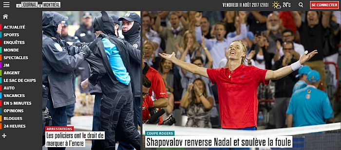 Trattamento simile da parte del Journal de Montreal, pubblicazione di taglio più popolare e “tabloidesco”, che dedica uno spazio a Shapovalov in home page, ma non in primo piano.