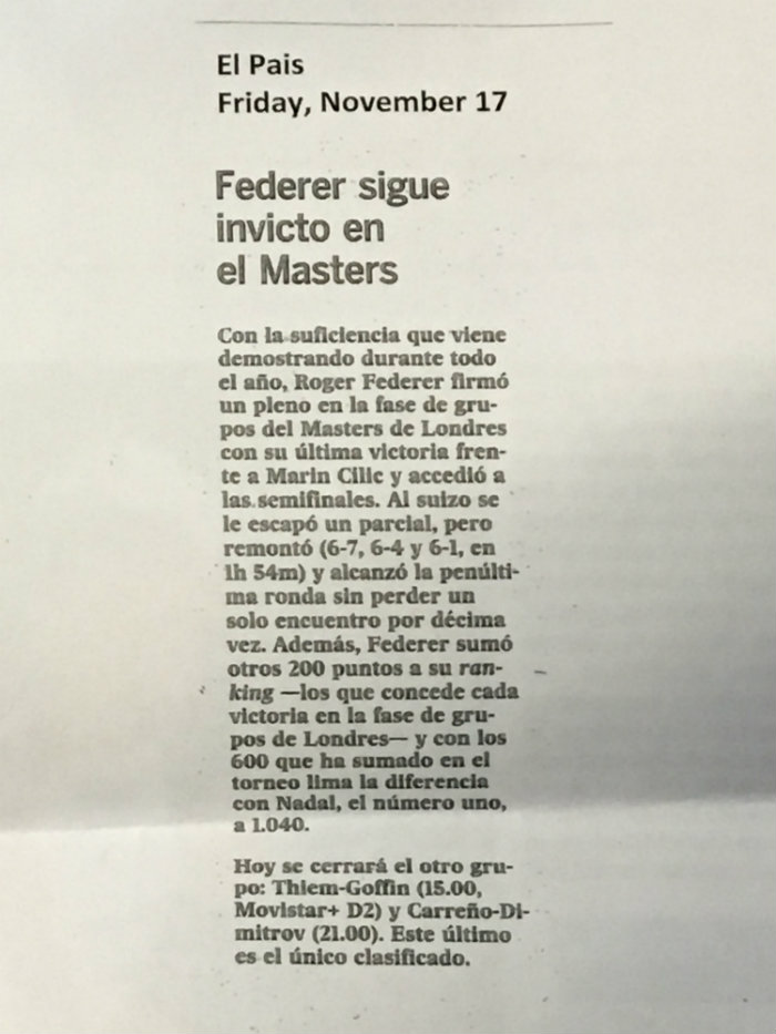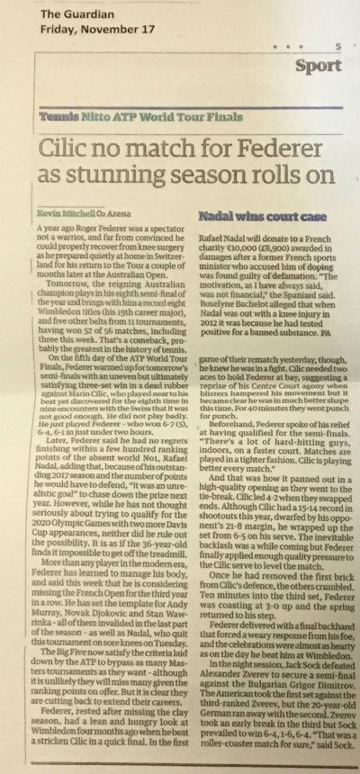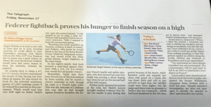 Raccolta di articoli dei giornali londinesi (ed esteri) nell'ultima giornata di Round Robin alle ATP Finals