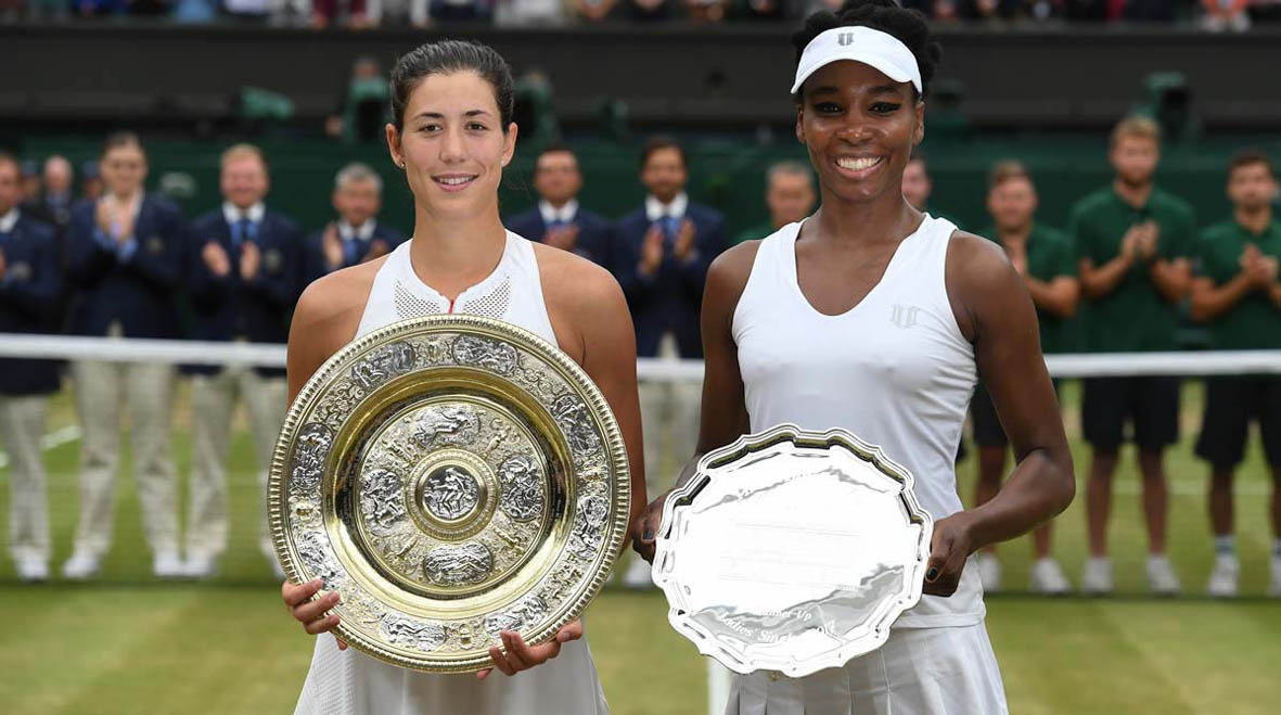 Devo confessare che è anche l’unico trofeo del tennis che riconosco a colpo d’occhio. Secondo Wikipedia, “il piattone” di Wimbledon ha un diametro di 18 pollici e 3/4 (poco meno di 48 centimetri). Il trofeo rimane di proprietà del circolo, però dal 1949 alle giocatrici viene regalata una replica, più piccola: fino al 2006 del diametro di 8 pollici (20,3 cm), mentre dal 2007 la misura è cresciuta a 14 pollici (35,5 cm). Dunque a oggi solo Venus e Serena possiedono le due versioni del trofeo, e solo Maria Sharapova (vincitrice nel 2004) potrebbe unirsi alla famiglia Williams come titolare delle repliche con i diversi diametri.