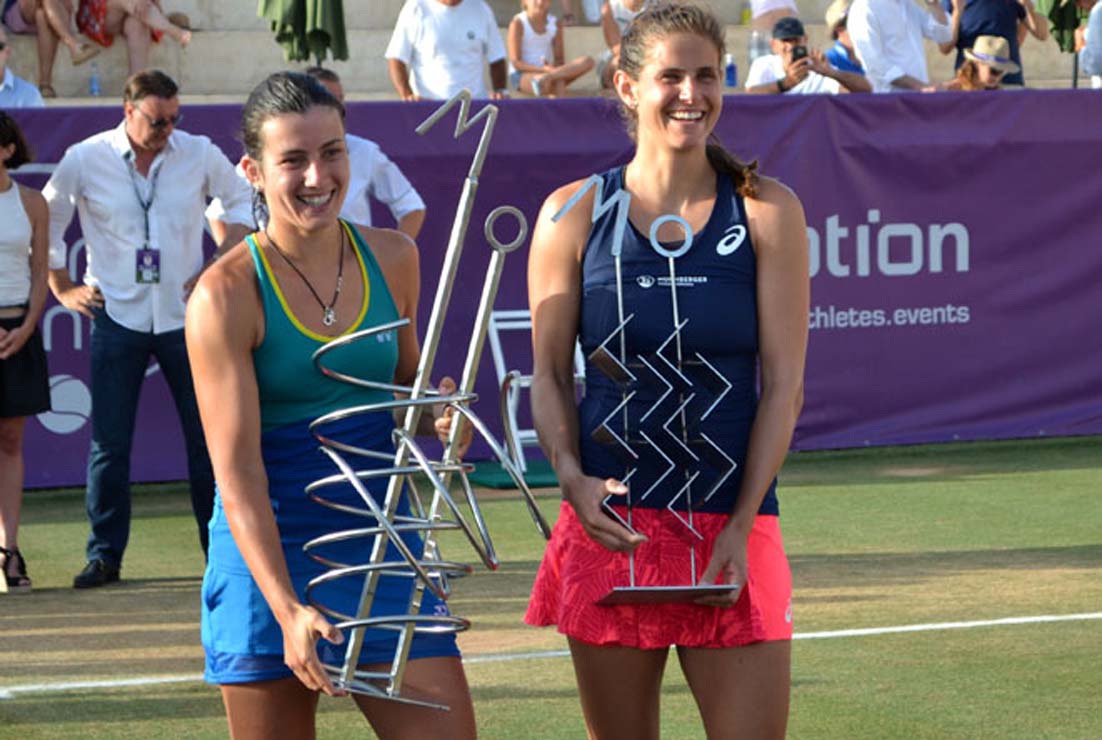 La spirale è presente anche a Mallorca, torneo di recente istituzione, che ha introdotto due sculture geometriche che eufemisticamente si potrebbero definire “non semplici da maneggiare”. Attorno alle due aste che reggono le lettere M e O (Mallorca Open) nella scultura per la vincitrice si intrecciano appunto due spirali: