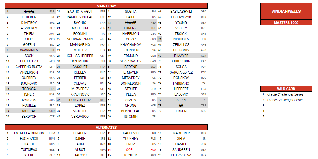 - Le entry list aggiornate: Indian Wells e Miami