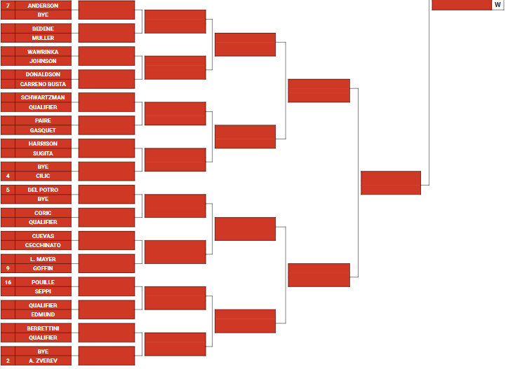 Infine, nel bel mezzo del quarto presieduto da Cilic (t.d.s. 4) e Anderson (t.d.s. 7), la Fortuna ha posizionato Stan Wawrinka, che tornerà a calcare il campo dopo tre mesi di assenza e incrocerà la racchetta con Steve Johnson. In caso di vittoria potrebbe trovarsi faccia a faccia con Carreno Busta, prima della sfida in prospettiva di ottavi di finale con Kevin Anderson. Nell’ottavo di Marin Cilic invece, che debutterà con Harrison o con Sugita, è da segnalare il derby francese al primo round tra Benoit Paire e Richard Gasquet.