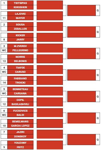 Il primo azzurro a scendere in campo sarà Thomas Fabbiano il quale, sfruttando i ritiri in serie degli scorsi giorni, ha rimediato un posto nel tabellone cadetto. Per fare il salto di qualità al primo turno dovrà avere la meglio su Viktor Troicki, che era presente nel box di Djokovic a Madrid. In contemporanea giocherà il 20enne Andrea Pellegrino che nelle passate settimane non ha sfigurato nei Challenger nostrani, tanto da meritarsi una wild card. Anche lui però ha pescato un tennista esperto e pratico di questi campi: Mischa Zverev. I restanti tre italiani, anche loro presenti con wild card, sono Filippo Baldi e Salvatore Caruso (entrambi impegnati in due incontri proibitivi contro due top 70, l’ungherese Fucsovics e l’americano Tiafoe) e Liam Caruana, che se la vedrà al primo turno con il francese Julien Benneteau. Per gli amanti del vintage e del bel tennis, segnaliamo la presenza di Florian Mayer, la sua ultima a Roma, che affronterà Dusan Lajovic, fresco vincitore su del Potro a Madrid. C’è molta curiosità anche per la testa di serie n.1, il 19enne Tsitsipas numero 40 del mondo, che se la vedrà con Kukushkin.