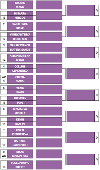 Passando al versante femminile spicca senza dubbio la presenza di Camila Giorgi la quale, in un derby tutto tricolore, giocherà contro Deborah Chiesa al primo turno. Quest’ultima, finalista nel torneo di pre-quali, è giunta nel tabellone con una wild card proprio grazie a quel risultato. Ad aprire il programma sarà comunque un’altra italiana, la 27enne Federica Di Sarra, anche lei wild card, attuale n. 379, che esordirà contro la slovena Hercog, recente finalista ad Istanbul. Uno dei match sicuramente più allettanti è quello di Martina Trevisan, 24 anni e n. 192 del mondo, che ha pescato la campionessa olimpica Puig. Segnaliamo infine l’ultima wild card azzurra conferita alla ucraina ma di passaporto italiano Anastasia Grymalska, 27 anni e n. 266 del mondo. L’esperta di ITF (ne ha conquistati ben 15 in carriera) ha un primo turno non certo agevole contro Zarina Dyas.