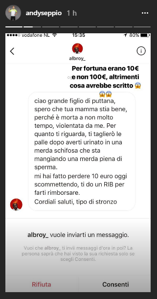 Non crediamo che Andreas Seppi fosse particolarmente annoiato dopo la sconfitta di ‘s-Hertogenbosch contro McDonald, ma ci sentiamo di condividere ugualmente la sua scelta di esporre al pubblico ludibrio una serie di utenti Instagram, che non ci sembra in effetti azzardato definire cretini, che hanno avuto l’originale (ah!) e brillante (eh!) pensata di insultare il tennista italiano a seguito del 6-4 6-2 rimediato sull’erba olandese. Per chi non avesse abbastanza familiarità con questa dinamica tanto (sob) frequente sui social, si tratta di scommettitori frustrati che si scagliano contro uno (o più) dei ‘responsabili’ dei loro mancati guadagni.