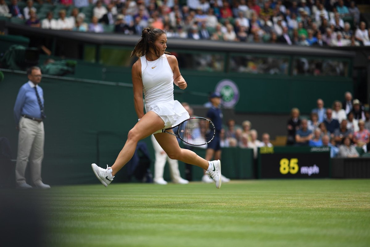 CHE BOTTE, RAGAZZI – Non è un film con Bud Spencer, ma il primo quarto di finale in scena sul campo 1 di Wimbledon. La scazzottata viene vinta in due set da quella che tira i pugni più pesanti, Jelena Ostapenko, la pur combattiva Dominika Cibulkova cerca di resistere al bombardamento, ma non basta. Come spesso avviene tra giocatrici esplosive e molto reattive in risposta, meno incisive e continue al servizio, l’inizio del match vede quattro break nei primi sei game, con Ostapenko che recupera e pareggia dopo essere andata sotto 3-1. Entrambe spingono tutto quello che possono, ma Jelena sembra sempre più convinta man mano che il match va avanti, mentre Dominika è costretta ripetutamente ad andare rasoterra con le ginocchia per contenere le accelerazioni dell’avversaria senza perdere campo. Dal 3-3 al 5-5, le ragazze entrano meglio in ritmo con la battuta, senza concedere occasioni, ma nell’undicesimo game la “belvetta” lettone si scatena: break a zero, e poi gran chiusura del set con due ace consecutivi, 7-5 Ostapenko.
