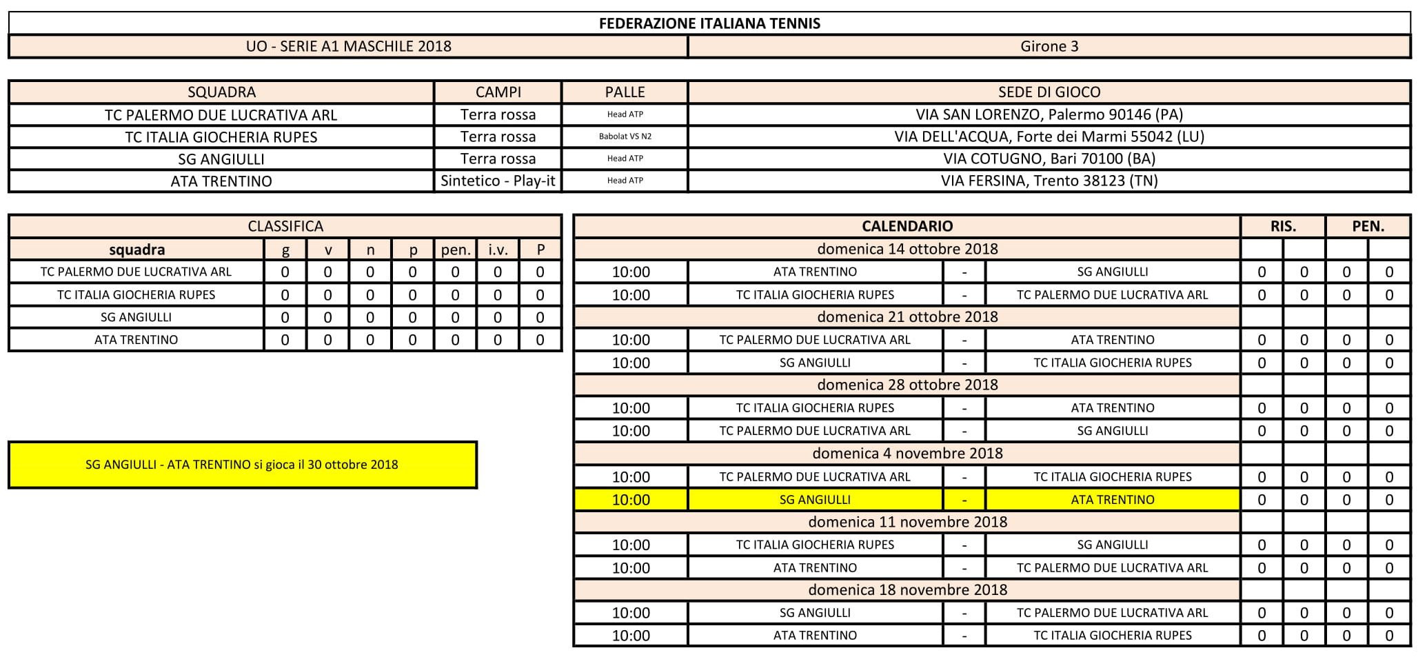 Il terzo girone vedrà andare in scena l’incontro tra l’altra neo promossa, Angiulli Bari, e l’ATA Trento, mentre il Tennis Club Italia di Forte dei Marmi riceverà la formazione del Tennis Club Palermo Due.